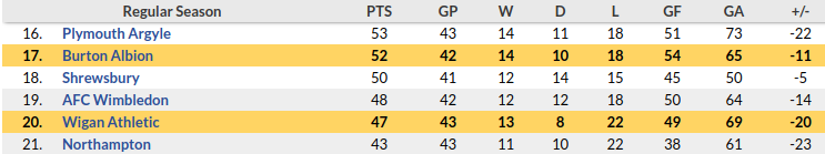 Burton has failed to win their last two matches after winning three on the bounce before that. They currently not in any immediate danger of the drop.