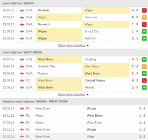 Wigan Vs West Bromwich Predictions & H2H: Head to head