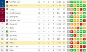 - The Baggies currently sit 2nd on the log a point adrift of leaders Sheffield United, they have won seven matches drawn three and lost two.
