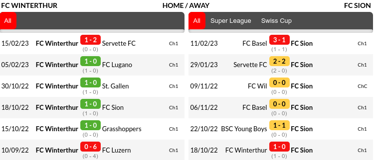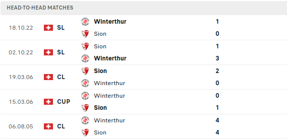 - In their previous encounter in the Swiss Super League, Winterthur claimed a 1-0 victory over Sion at Stadion Schützenwiese in October.