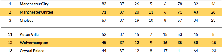 Wolverhampton vs Manchester Utd Prediction: Standing