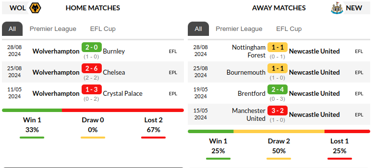 The head-to-head record favors Newcastle, who have dominated their recent encounters against Wolves.