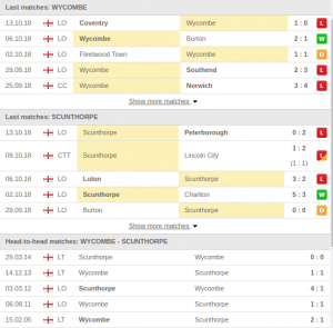 Wycombe vs Scunthorpe Predictions & H2H: Head To Head