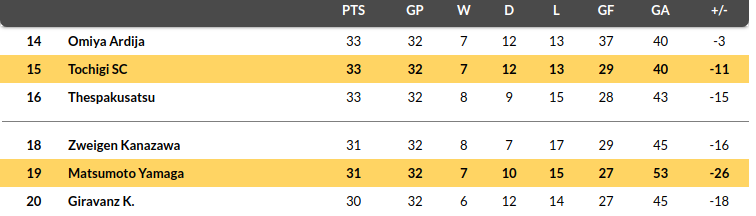 - Tochigi come into this match at the back of two straight defeats, this a good spell of 10 points haul from four matches.