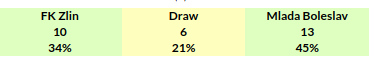- Zlin have failed to win any of their last 10 matches in a period their lost six and drawn four.