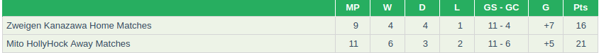 Zwiegen Kanazawa vs Mito Hollyhock: Head to head